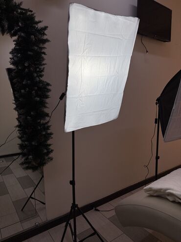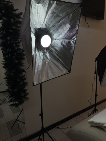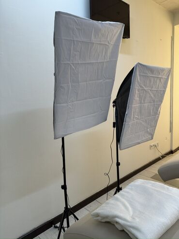 - Два прямоугольных софтбокса с внешними диффузорами для мягкого ровного света.