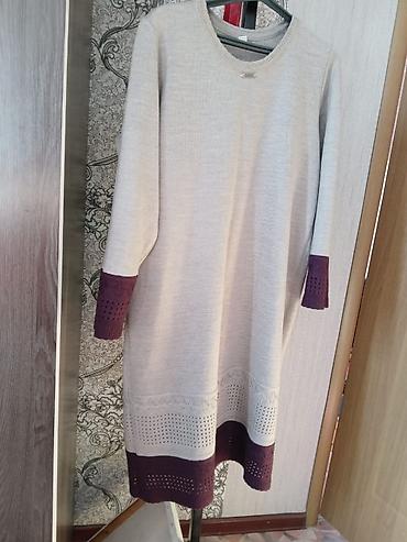 - Платье прямого кроя, мягкий трикотаж светло-серого цвета.