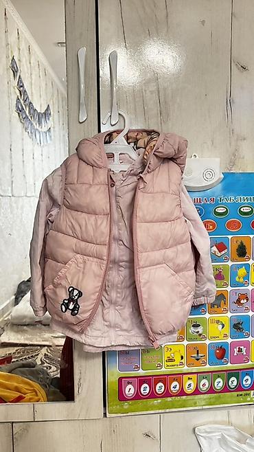 - Утеплённый жилет без рукавов, светло‑розовый, на молнии, два кармана, аппликация мишка.
