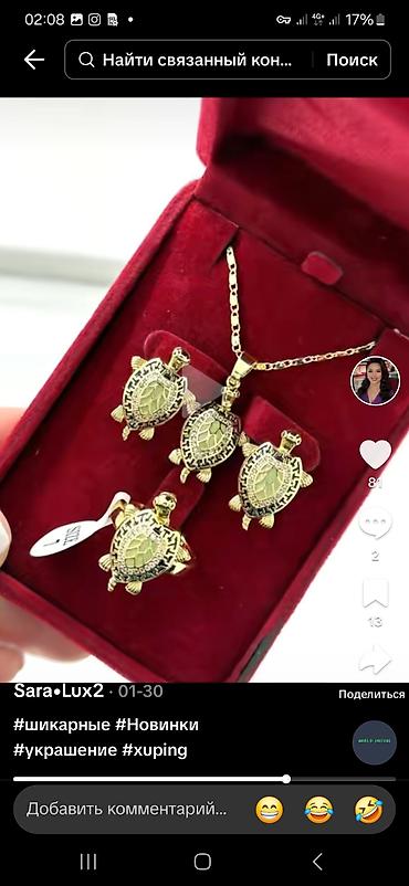 Комплект украшений, выполненный в виде черепах,В набор входит колье с подвеской, серьги и кольцо.отдам за 800с абсолютно новая,ни разу не носила!