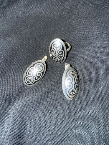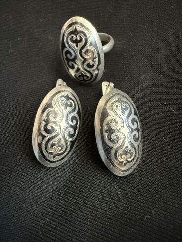 Комплект украшений с чернением: кольцо и серьги