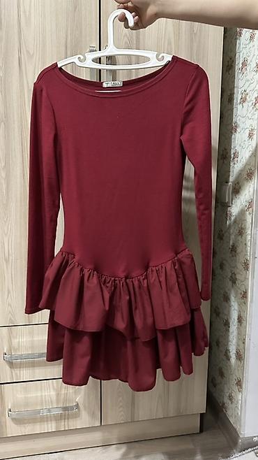 1) Платье с длинным рукавом, модель с баской и многоярусной юбкой. Классический круглый вырез, эластичный трикотажный верх, мягкие струящиеся ярусы по подолу. Цвета: черный и бордовый.