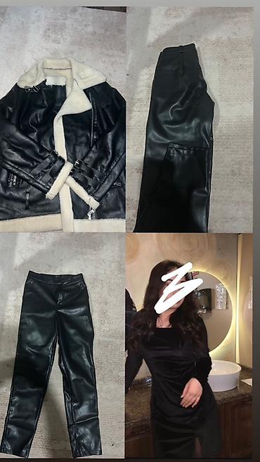 Комплект женской одежды: 1) Дублёнка-косуха из чёрной экокожи с