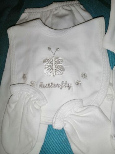 Платная доставкаСамовывозКлассный комплект на выписку белый. Очень нежный, красиво смотрится. Новый. Кофточка, ползунки, слюнявчик, царапки.