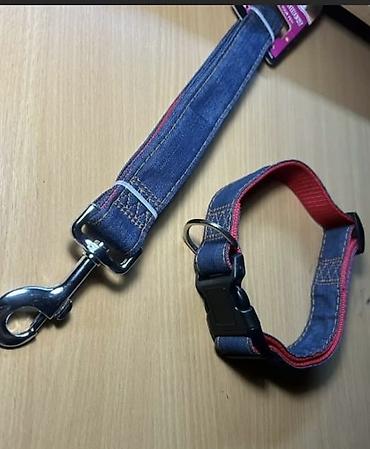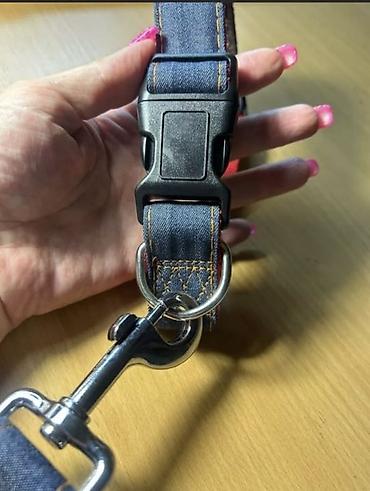 Ошейник + поводок комплект под джинсу для крупных собак. Ширина 3 см. Обьем ошейник с 44 см до 67 см. Поводок 120 см. Цена за комплект 800 сом НОВЫЙ ТОРГА НЕТ ###дворняжка, тойтерьер пудель...
