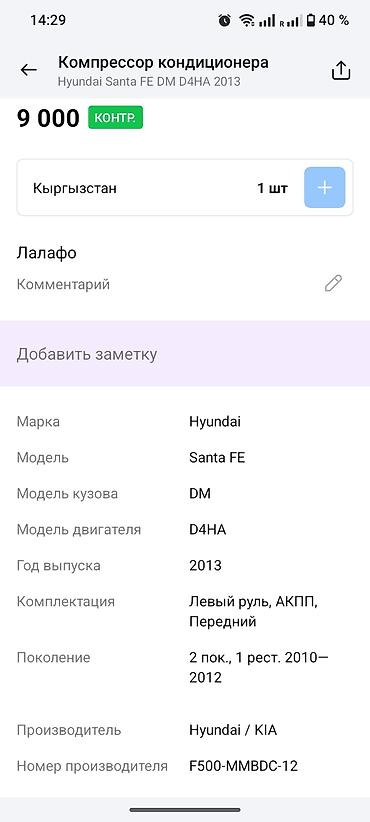 - Оптимален как замена штатному компрессору на Santa Fe DM с дизельным мотором D4HA.