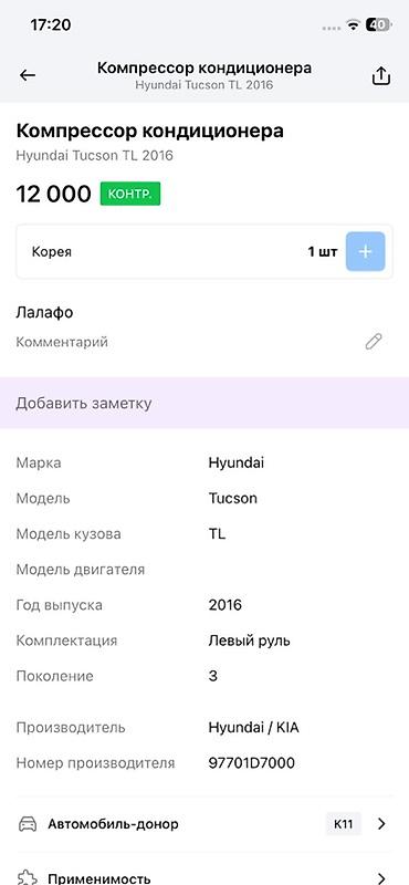 Подходит как замена штатному компрессору на Tucson TL 2016 при сохранении оригинальных креплений и геометрии.