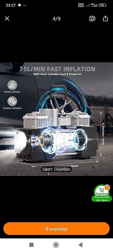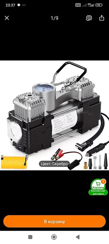 Автомобильный компрессор 12 В (двухцилиндровый), цвет: серебро