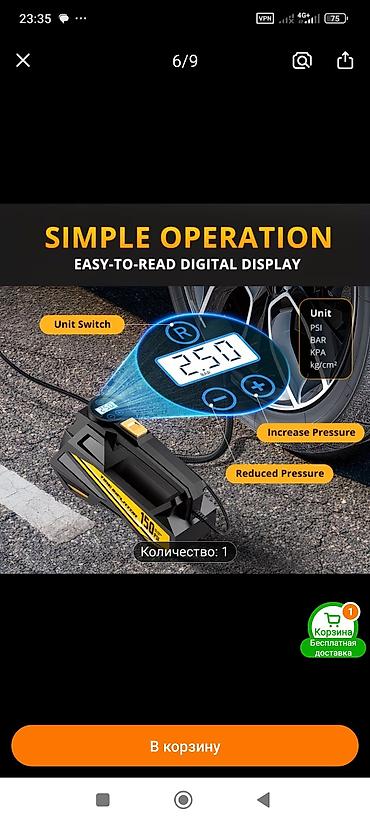 Подходит для шин легковых авто, велосипедов, мотоциклов, мячей и надувных изделий. Простое управление: выбрать единицы, установить нужное давление и накачать.