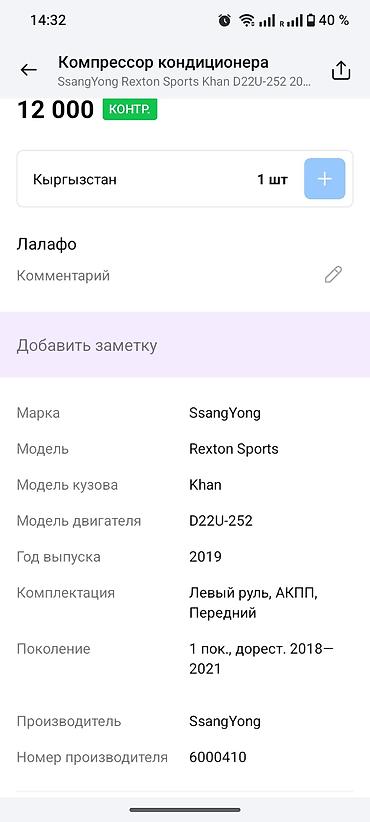 - Применимость: SsangYong Rexton Sports / Khan, 1‑е поколение (дорестайлинг 2018–2021), двигатель D22U‑252, 2019 г. в.