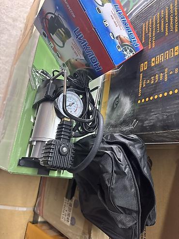 Поршневой автомобильный компрессор для накачивания шин и спортивного инвентаря. Оснащён встроенным манометром для контроля давления и металлической рамой-ручкой для удобной переноски.