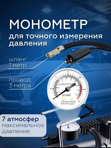 Доп. опции компрессора работает от гнезда прикуривателя; манометр с двойной шкалой