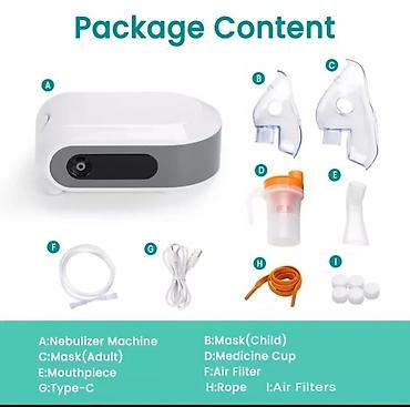 Небулайзер ингалятор новые доставка 24/7 Бишкек, компрессорный, компактный, легкий, в комплекте взрослая и детская маска, мундштук, распылитель для лекарства с насадкой, запасные фильтра, Бишкек до...