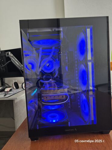Охлаждение процессора водяное, так же всё в красивом корпусе "аквариум" от DeepCool CG530 4F, в него же еще установлены дополнительно 4 кулера для лучшего охлаждения. Плёнки со стёкол еще не сняты.