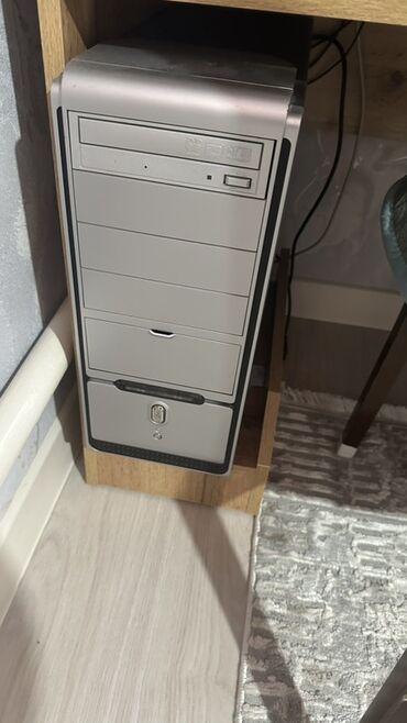- Системный блок в серебристом корпусе ATX (фронтальная панель с отсеками под приводы и картридер, замок на нижней крышке).