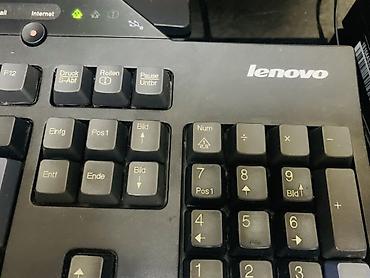 - Проводная клавиатура Lenovo полноразмерная с цифровым блоком (раскладка DE, отдельные клавиши Num/Ins/Del, функциональные клавиши F1–F12).