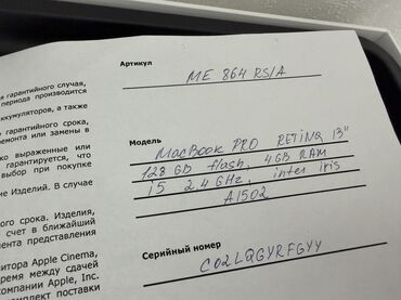Ноутбук, Apple, 4 ГБ ОЗУ, Intel Core i5, 13.3 ", Б/у, Для работы, учебы, память SSD