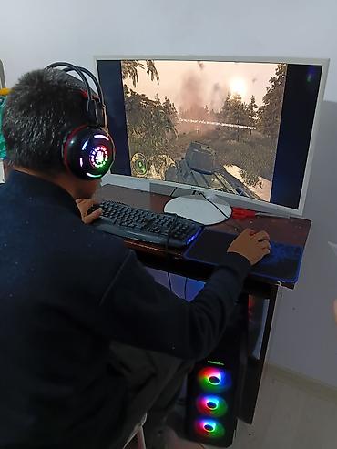 Игровой компьютер — полный комплект Состав набора: - Системный блок с подсветкой RGB (прозрачные панели, два фронтальных вентилятора и один тыловой) - Монитор 22" с разрешением 1920×1080 (Full HD)...