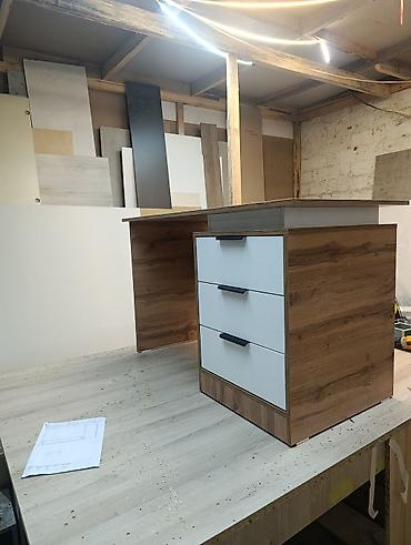 - Размеры ориентировочно по фото: ширина столешницы около 120–140 см, глубина 60–70 см, высота ~75 см (уточняйте по факту).
