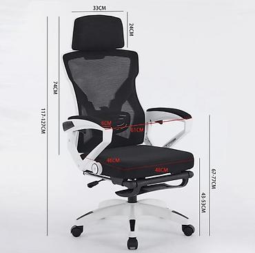 Эргономичное офисное кресло черного цвета с сетчатой спинкой и мягким сиденьем, обеспечивающее комфорт в течение всего рабочего дня. Кресло оснащено регулируемым подголовником и подлокотниками, а т...