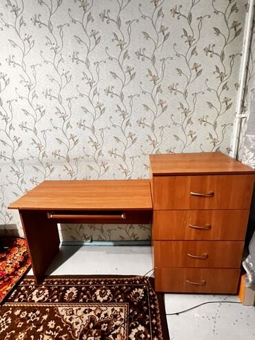 - Компактная конструкция: стол и тумба объединены в единую устойчивую секцию; верхняя поверхность тумбы может использоваться как дополнительная полка.