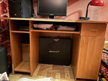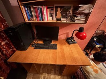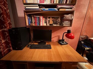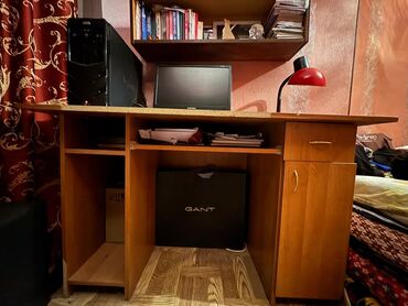 - Широкая столешница с просторным рабочим полем — удобно для монитора, клавиатуры, тетрадей и настольной лампы.