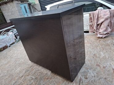 - Материал: ЛДСП с древесной текстурой, тёмный оттенок; гладкая глянцевая поверхность.