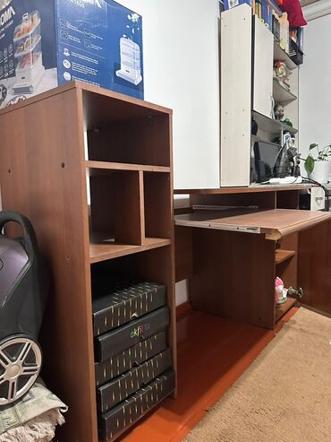 - Левая надстройка с открытыми секциями разной высоты для книг, папок и аксессуаров.