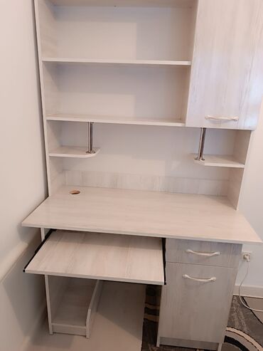 Компьютерный стол с надстройкой и местом под системный блок. Цена 7 тыс сом . Реальным клиентам есть небольшая уступка - Материал: ЛДСП под дерево. - Просторная столешница для работы и учебы. - Н...