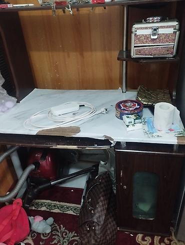 - Габариты по визуальной оценке: ширина около 110–120 см, глубина 55–60 см, высота с надстройкой 120–130 см.