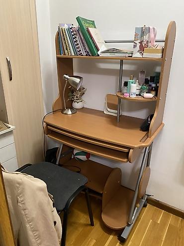 В комплекте на фото видны: настольная лампа, стул и предметы на полках — представлены для демонстрации использования.