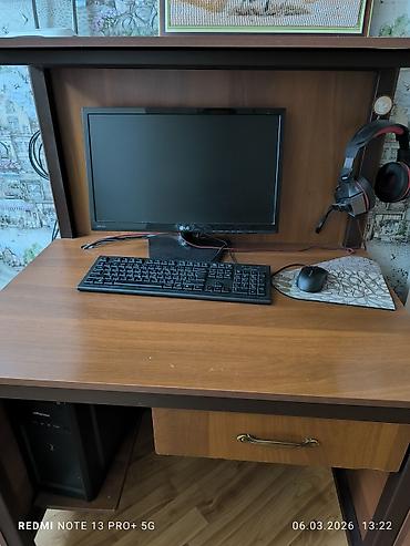 - Рабочая зона: просторная столешница, удобно размещаются монитор, клавиатура и мышь.