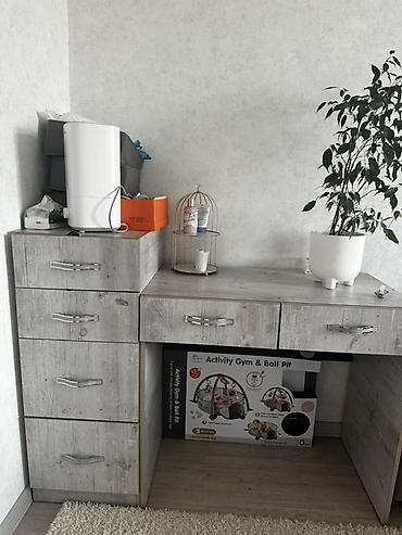 - Столешница: прямая, широкая, подходит для работы за компьютером, учебы и хранения канцелярии.