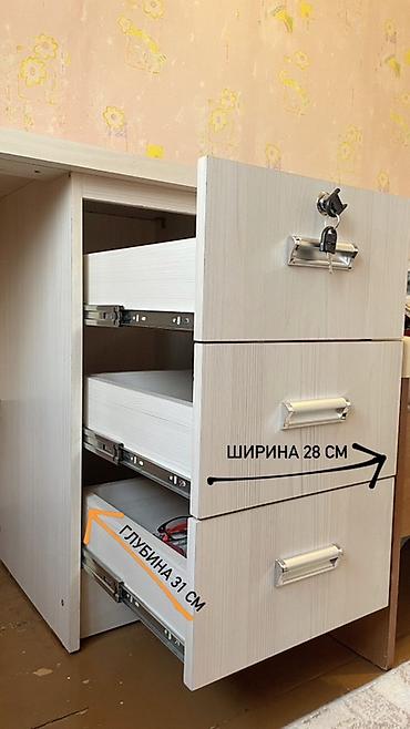 - Правая тумба с тремя выдвижными ящиками на роликовой задвижке.