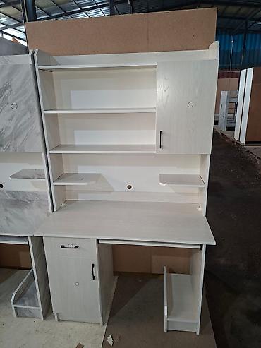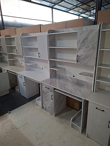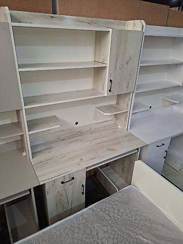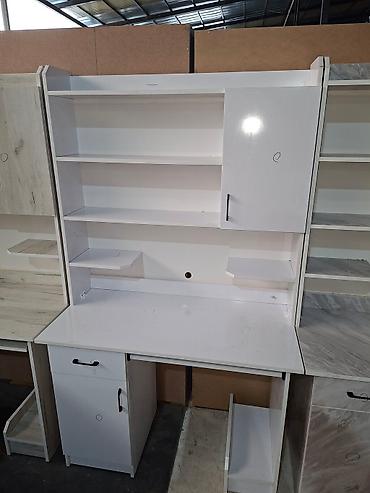 Компьютерный стол со встроенными полками и шкафчиками. Стол оснащен выдвижной полкой для клавиатуры и нишей для системного блока. Дополнительные полки и закрытые секции обеспечивают удобное хранение книг, документов и канцелярских принадлежностей. Доступен в двух цветовых решениях: чисто белый и белый с серым мраморным узором.