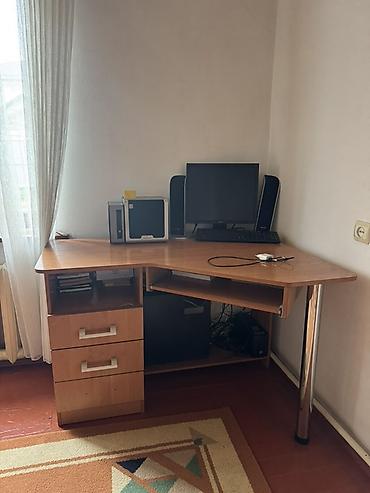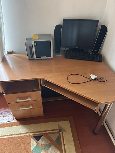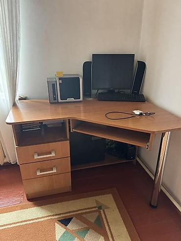Реальным клиентам уступим , новая цена 5000 сом . Компьютерный стол с надстройкой и местом под системный блок.. Реальным клиентам есть небольшая уступка - Материал: ЛДСП под дерево. - Просторная...