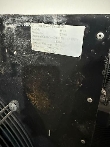 Конденсатор с воздушным охлаждением модели W9A, предназначенный для использования в системах охлаждения. Устройство имеет номинальную мощность охлаждения 85 кВт при дельте температуры 15K и оборудовано вентиляторами для эффективного отвода тепла. Металлический корпус обеспечивает долговечность и надежность. Подходит для промышленных и коммерческих объектов, требующих высокой эффективности охлаждения.