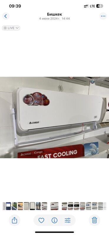 Подходит для квартир, домов, офисов и торговых помещений. Бренд CHIGO. На стендах указаны преимущества серии и отметка Fast Cooling.