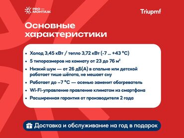 ➡️Мощность: охлаждение 2,3 – 3,5 кВт, обогрев 2,5 – 3,7 кВт — комфорт при -7 … +43 °C.