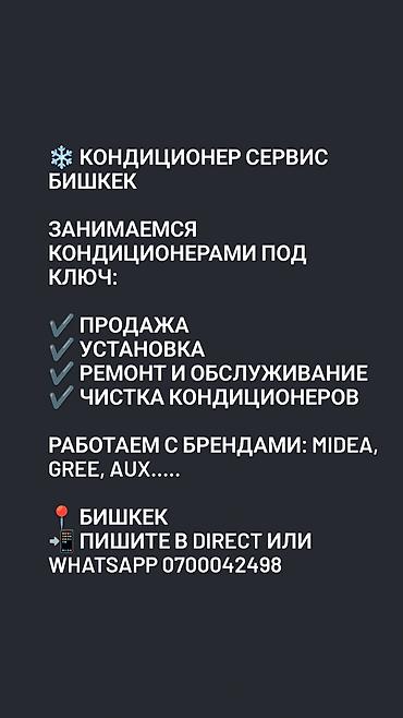 Связь: WhatsApp кондиционер, кондиционеры, установка кондиционера, монтаж кондиционера, установка кондиционеров Бишкек, монтаж кондиционеров Бишкек, ремонт кондиционера, ремонт кондиционеров, чистка кондиционера, заправка кондиционера, обслуживание кондиционера, мастер по кондиционерам, сервис кондиционеров, установка сплит системы, монтаж сплит системы, ремонт сплит системы, установка кондиционера недорого, мастер кондиционер, ремонт бытовой техники, ремонт техники, мастер по ремонту техники, ремонт холодильника, ремонт стиральной машины, ремонт бытовой техники на дому, ремонт техники Бишкек, кондиционер орнотуу, кондиционер орнотуу Бишкек, кондиционер установка, кондиционер оңдоо, кондиционер ремонт, кондиционер тазалоо, кондиционер мастер, кондиционер сервис, кондиционер монтаж, техника оңдооту,