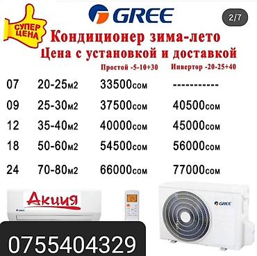Кондиционеры «зима–лето» с установкой и доставкой включены в цену. Бренды и модели на выбор: AUX, GREE, TCL, Almacom. Доступны как простые (-5…+30 °C), так и инверторные (-20/–25…+40 °C) версии.