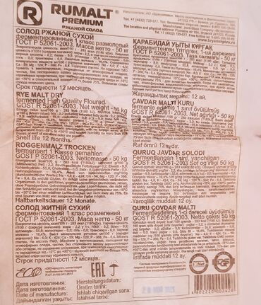 Продаю Солод ржаной сухой ферментированный 50кг Rumalt premium
