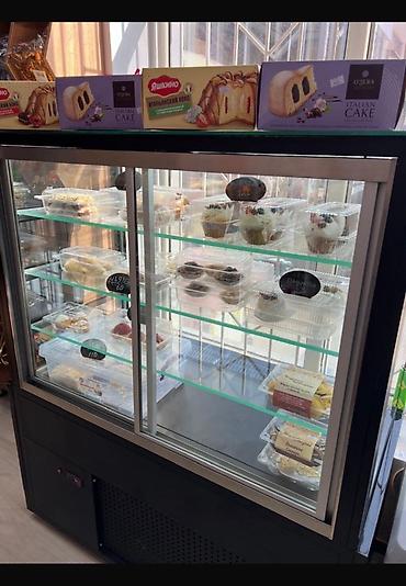 Срочно ‼️ Срочно ‼️ Холодильная витрина кондитерская с выгнутым стеклом. Один месяц постояла в кафе. Покупали за 78000 сом.Есть Гарантия. Новая в идеальном состоянии. Есть красивая белая подстветк...