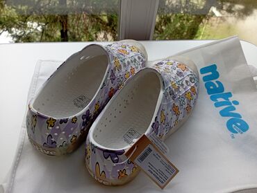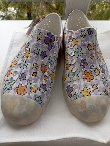 Обувь бренда Native Shoes, модель Jefferson, которая известна своей легкостью, водонепроницаемостью и удобством. Обувь выполнена из материала EVA (вспененный этиленвинилацетат), что делает её лёгкой, гибкой и подходящей для воды.