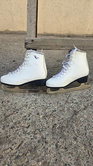 Коньки классические, белые. 37-38 размер - Модель: женские/подростковые, высокие ботинки на шнуровке - Материал верха: синтетическая кожа с декоративной строчкой и принтом на пятке - Подошва/каблу...Договорная