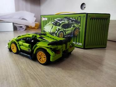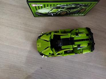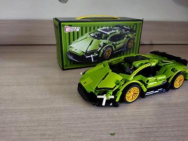 - Набор для сборки зелёного суперкара с жёлтыми дисками