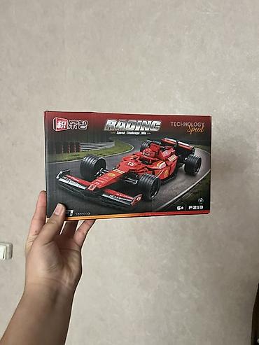 - Набор Racing F1 (серия Technology • Speed): сборная модель красного болида Формулы‑1. Возраст: 6+. Коробка с изображением трассы, на обороте — крупные планы деталей переднего и заднего спойлеров, кокпита и колёс. Артикул/обозначение на коробке: F213.