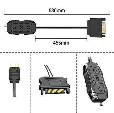 В наличии также имеются разветвитель ARGB для подключения нескольких устройств через один разъем (покупается отдельно).