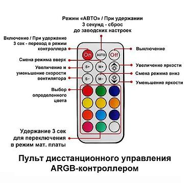 Контроллер ARGB с ПДУ - предназначен для легкого, комфортного управления вентиляторами, радиаторами и другими устройствами с подсветкой через коннектор ARGB 5V-3 pin.