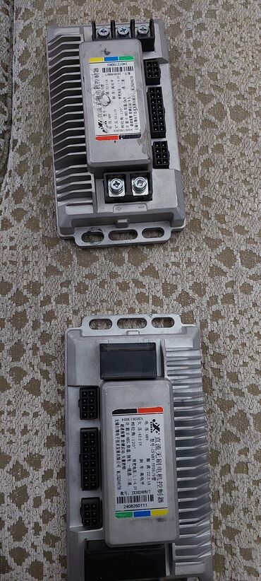 В комплекте на фото — два электронных блока в алюминиевых корпусах с нижними крышками на винтах. Подойдут как замена штатного контроллера 48 В с током до ~22 А. Перед установкой проверьте распиновку разъёмов и соответствие мотора/аккумулятора.